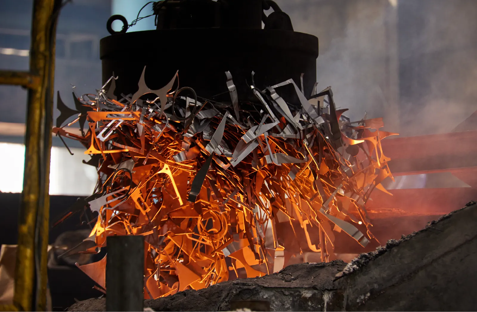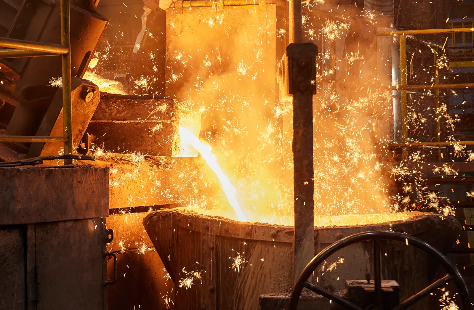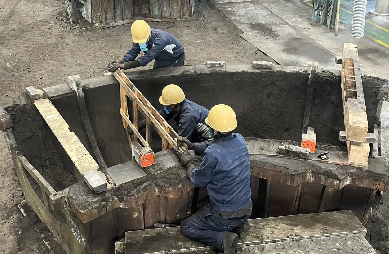 銑鉄を電気炉(キューポラ)で溶かし、1500度で工場全体を工程させます。鋳型だけ(溶鉄)を組成通りに仕上げてマグネシウムと反応させることでダクタイル鋳鉄をつくります。そして鋳型を組立します。このタイミングで材料成分を確認しています。